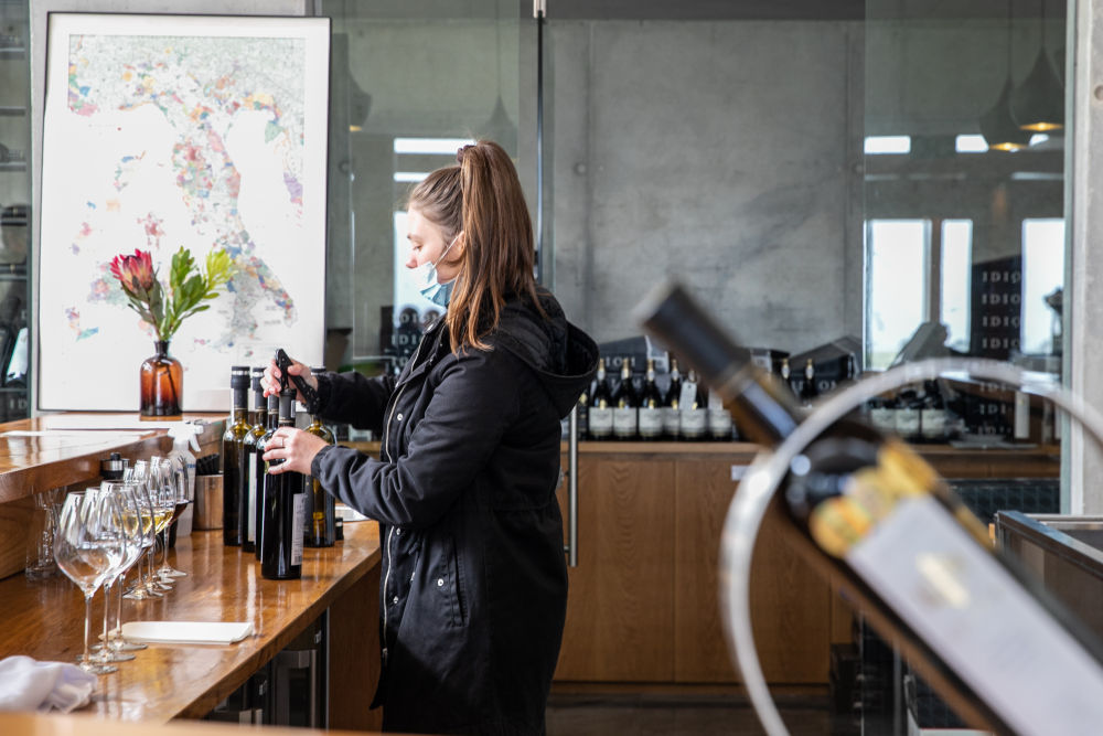 9月20日,在南非开普敦,葡萄酒庄园的工作人员在开酒。新华社记者吕天然摄