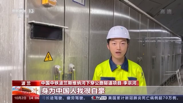 中国中铁波兰斯维纳河下穿公路隧道项目 黄伟楠:我身后的这台盾构机完全由咱们中国自主研制,它是第一台出口到欧洲的盾构机。我们开挖的这条隧道全长有1400多米,是波兰境内最长的水下公路隧道。前几天隧道顺利贯通了。