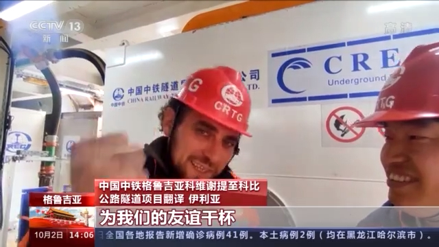 中国中铁格鲁吉亚科维谢提至科比公路隧道项目翻译 伊利亚:中国的兄弟姐妹们好,感谢你们将优秀的工程师派到这里,帮助我们一起建设家园,欢迎大家来格鲁吉亚品尝红酒,为我们的友谊干杯。