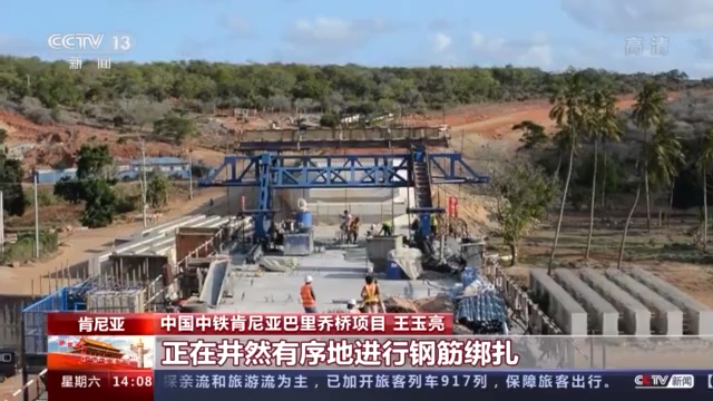 中国中铁肯尼亚巴里乔桥项目 王玉亮:大家好,我叫王玉亮,我现在所在的位置是肯尼亚巴里乔桥连续梁施工现场。巴里乔桥横跨肯尼亚第二大河流阿西-加拉纳河,桥梁全长241米,目前桥梁主体已完成78%,大家可以看到,在我身后不远处,正在井然有序地进行钢筋绑扎、模板调设等作业,项目预计在2022年4月底全部完工。该桥让肯尼亚桥梁用上中国标准!建成通车后,对于完善肯尼亚乡村道路网,改善两岸贫穷落后的现状,带动该区域经济社会发展具有十分重要的意义。