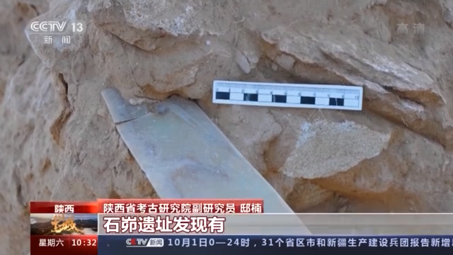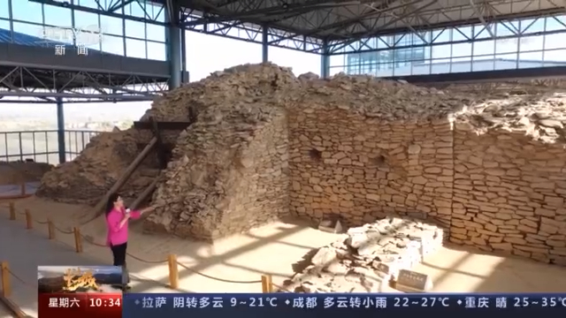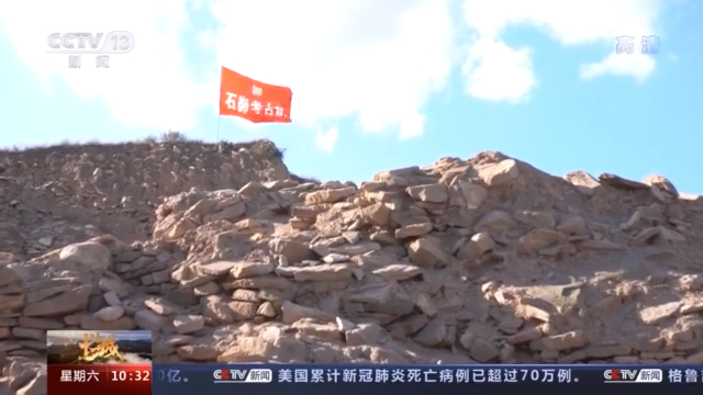 总台记者 裴斐:在烽火台东边的1.5公里处,就是正在考古发掘的石峁遗址皇城台地点。探访石峁古城,寻踪华夏文明,品鉴玉石大美,聆听人类初音,这是我走到石峁遗址保护区手机里收到的第一条信息。被誉为“探寻中华文明起源窗口”的石峁古城,始建于距今约4300年,遗址中心的皇城台台体呈金字塔状,出土了陶、骨、玉、石等各类文物数以万计,其中尤以大型柱础石和石雕的发现引人注目。