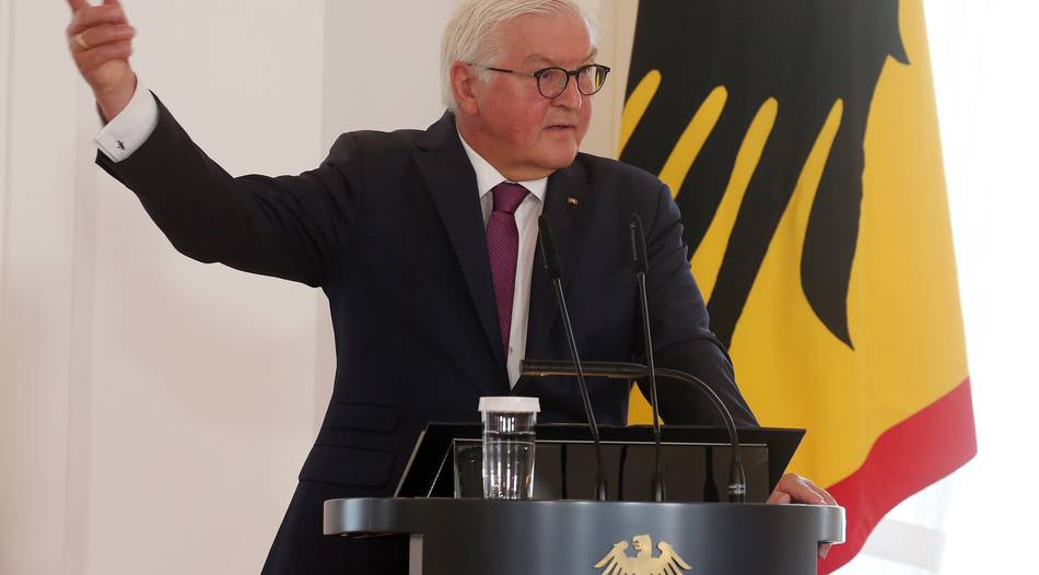 △施泰因迈尔10月1日在颁奖典礼上发表讲话(图片来源:德新社)