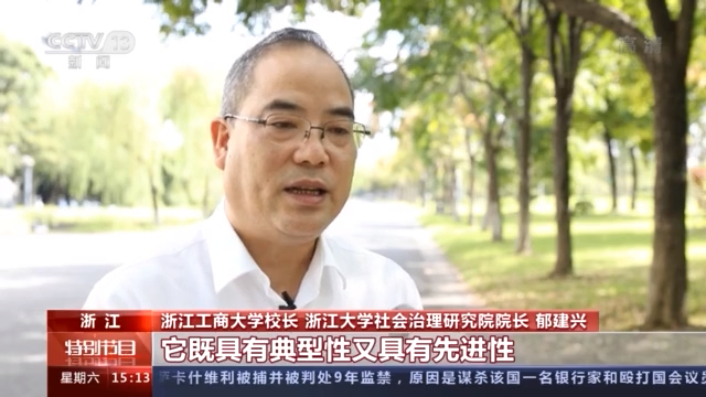 浙江工商大学校长、浙江大学社会治理研究院院长 郁建兴:浙江在这个进程中,它在市场机制方面,在行政机制方面,在社会机制方面,在文化机制方面,在数字治理机制方面,它可以形成很多重要的经验,为我们其他的省市能够提供好的一些借鉴。另外一个方面,我们浙江在建设共同富裕示范区的同时,就要启动促进东西部共同富裕的伟大事业,将浙江的体制机制、政策体系,它的可复制性、可推广性来得到检验。