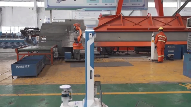 智慧梁场引入了新一代智能钢筋数控加工、机器人焊接、机器人巡查,不仅能大大提升生产效率,也能很好地提升现场质量安全管理水平。以焊接为例,在传统人工焊接方式下,需要2~3名技术娴熟的焊接师傅配合才能在5分钟内较好地完成一个顶板箍筋及剪力筋的焊接,杭绍甬智慧高速通过新型焊接机器人的引用,在1名操作工的操作下,5分钟内可以高质高效地完成3个顶板箍筋及剪力筋的焊接工作,极大地提高了焊接工作效率,减少人力成本,并在最大程度上保障焊接的精度和质量。(总台记者 高珧)