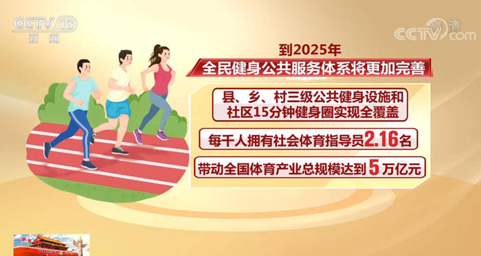 2019年6月,国务院印发《关于实施健康中国行动的意见》,在全国推动实施健康中国行动以来。全民健康素养水平稳步提高。2020年全国居民健康素养水平达到23.15%,较2018年17.06%提升了6.09个百分点。《全民健身计划(2021-2025年)》指出,为更好满足人民群众的健身和健康需求,到2025年,全民健身公共服务体系将更加完善,县、乡、村三级公共健身设施和社区15分钟健身圈实现全覆盖,每千人拥有社会体育指导员2.16名,带动全国体育产业总规模达到5万亿元。