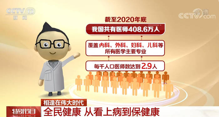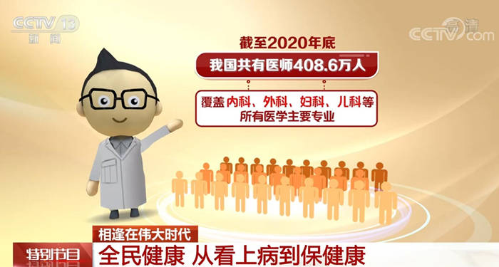 40多年来,我国医疗卫生服务体系不断健全,医疗卫生资源迅速增加,群众获得服务的可及性明显改善。截至2020年底,我国共有医师408.6万人,覆盖内科、外科、妇科、儿科等所有医学主要专业,每千人口医师数达到2.9人。2020年,全国医疗卫生机构总诊疗人次数达到77.4亿,我国医师队伍支撑起世界上最大的医疗卫生服务体系。