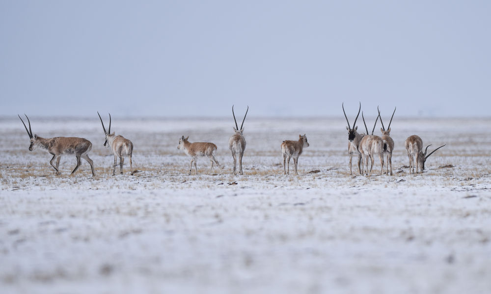 4月20日,藏羚羊在三江源可可西里地区活动。新华社记者 吴刚 摄