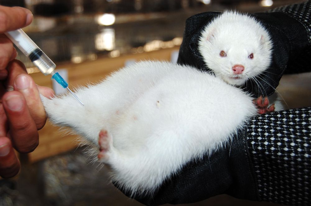 图为工作人员在给水貂注射疫苗的资料照片。(新华社记者郭绪雷摄)