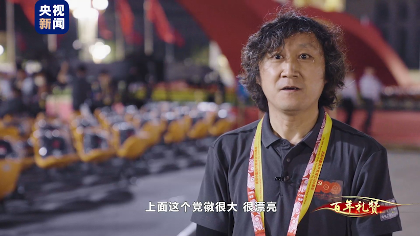 中央广播电视总台转播团队摄像 侯鑫强:就是一个无实物的拱门,上面并没有党徽,因为还没架上去。我们只是在想,上面这个党徽很大、很漂亮。等那天架上去长镜头走完的时候,我们当时内心都很激动,旁边看着的人也都很激动,导演组当时对这个镜头的要求是又要有政治的表达,又要有艺术化的表达,我们确实是做到了。(总台央视记者 侯军 李文杰 刘洁 周培培 王瑞宁 曾文甫)