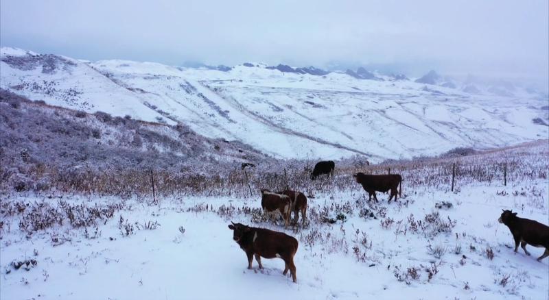 受冷空气的影响,10月2日上午开始,新疆昌吉、哈密等地山区迎来降雪,新增积雪5~10厘米,最低气温降至0℃,当地牧民紧急将在外放养的牛羊赶回暖圈,确保牲畜顺利度过这场降温天气。