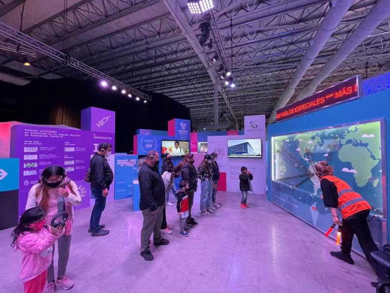 该博览会分为工业、科技、自然、可持续发展等7个主题。在“疫苗主题国际联展”部分,主办方在展位播放中阿抗疫合作纪实视频,重点宣传中阿抗疫合作成果、中国提出的全球抗疫合作倡议和中国在推动国际抗疫合作方面作出的重要贡献。