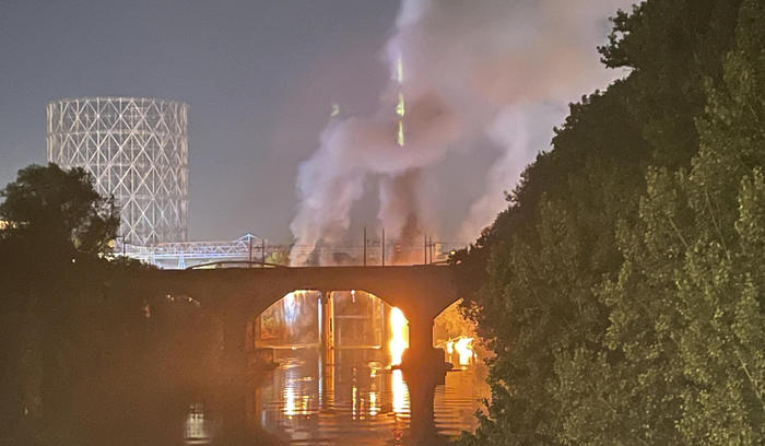 该座起火桥梁名为工业桥,建于1862年,长131米。媒体报道称,初步判断起火点可能位于桥梁下方区域。(总台记者 邓宗宇)