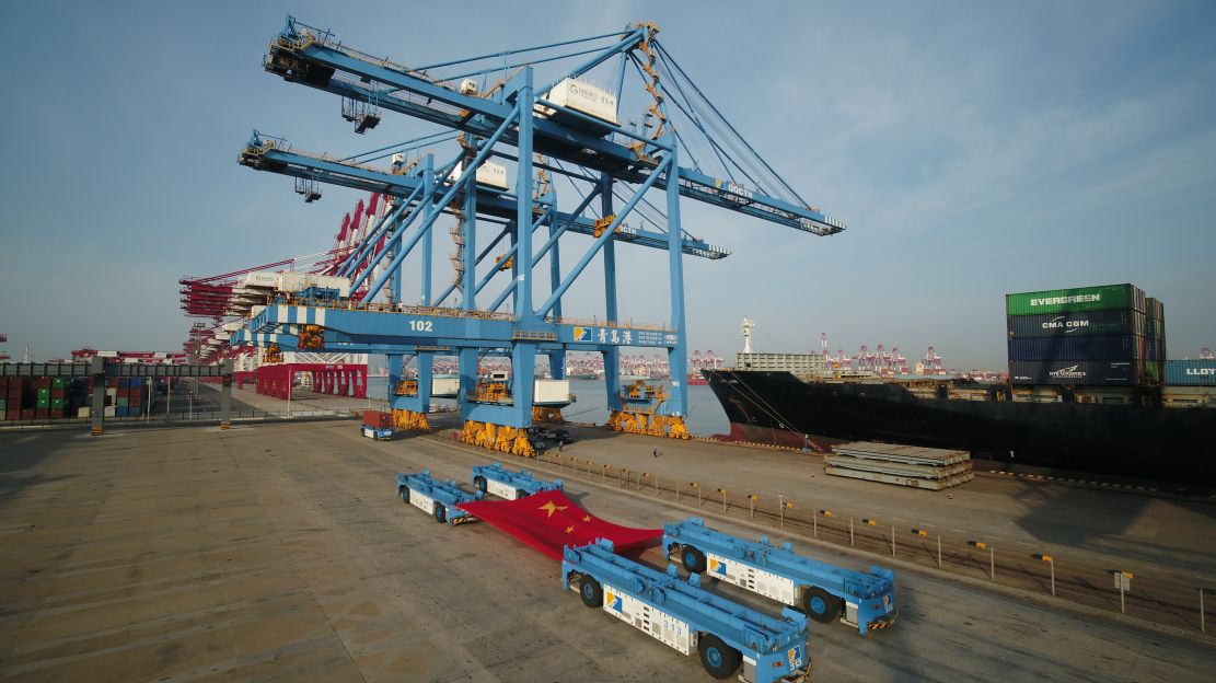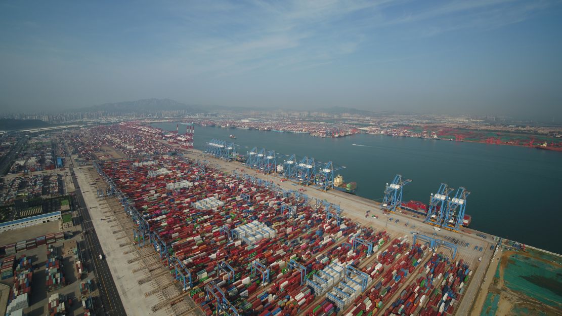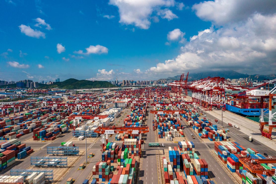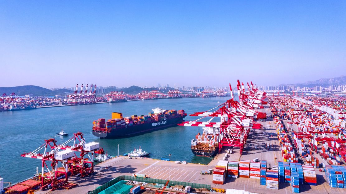 在“时代楷模”“连钢创新团队”诞生地——山东港口青岛港自动化码头,桥吊作业你追我赶,自动引导运输车(AGV)往来穿梭,一派繁忙景象,科技优势格外凸显,8000标准箱(TEU)以上大型船舶作业效率同比增长3%,重点作业线单机效率同比增长3.2%,码头集疏运周转时间13.1分钟。