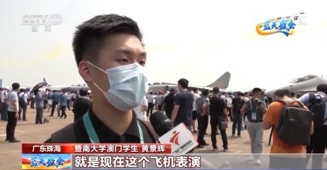 暨南大学澳门学生 黄景辉:令我(印象)特别深刻的,就是现在这个飞机表演,因为在其他地方很少有机会,看到这么大规模,这么近距离可以看到,这些那么精彩的飞机表演,看到它们做这些高难度动作,同时也代表了它自身的高新科技,都会让我感到民族自豪感和民族自信心。