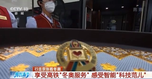 总台央视记者 陈晰:冬奥线上的“雪之梦”小姐姐,都会佩戴特殊的冬奥徽章,这是雪之梦乘务组的专属标志。冬奥线上有十大特色服务,今天我给大家体验三项。