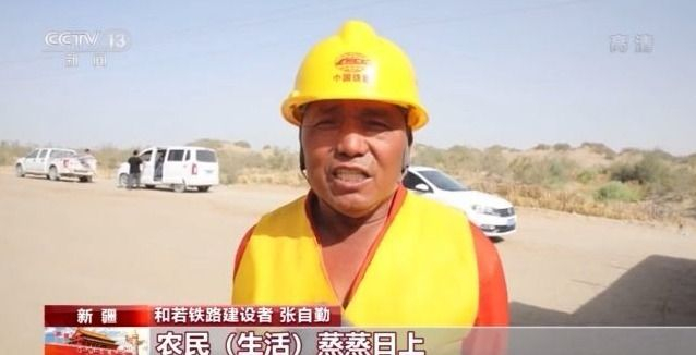 和若铁路建设者 张自勤:咱们国家是一个兴旺发达的国家。和若铁路历史以来是没有通过火车,三年之内,把和若铁路算是建通了。辛苦归辛苦,心里边高兴得很,咱们中国富强起来了。和若铁路建通以后,给新疆农民是有大的贡献,像大枣、哈密瓜,什么农产品都能运出去了,都能销售得掉,好事。