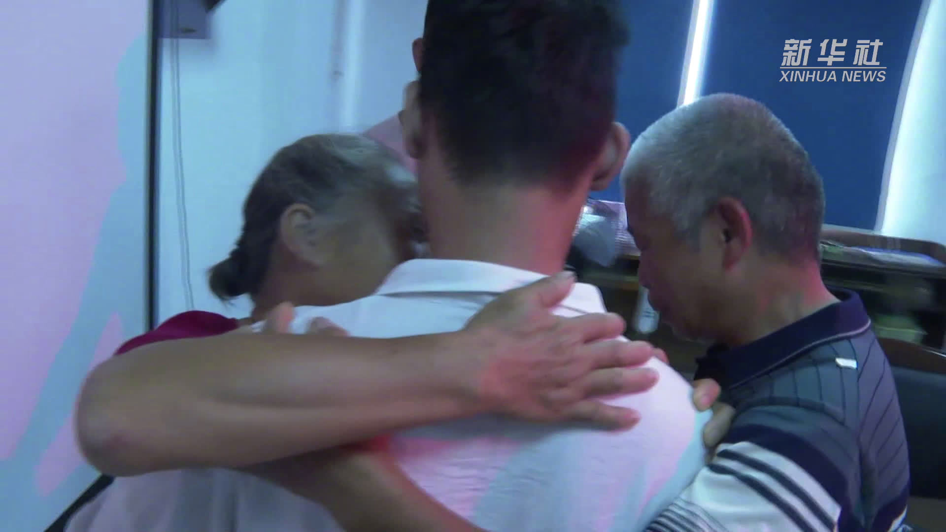 10月1日,黄某康夫妇跟随民警来到中山市;见到失散32年的儿子时,他们相拥而泣。(记者黄浩铭) 新华社的微博视频