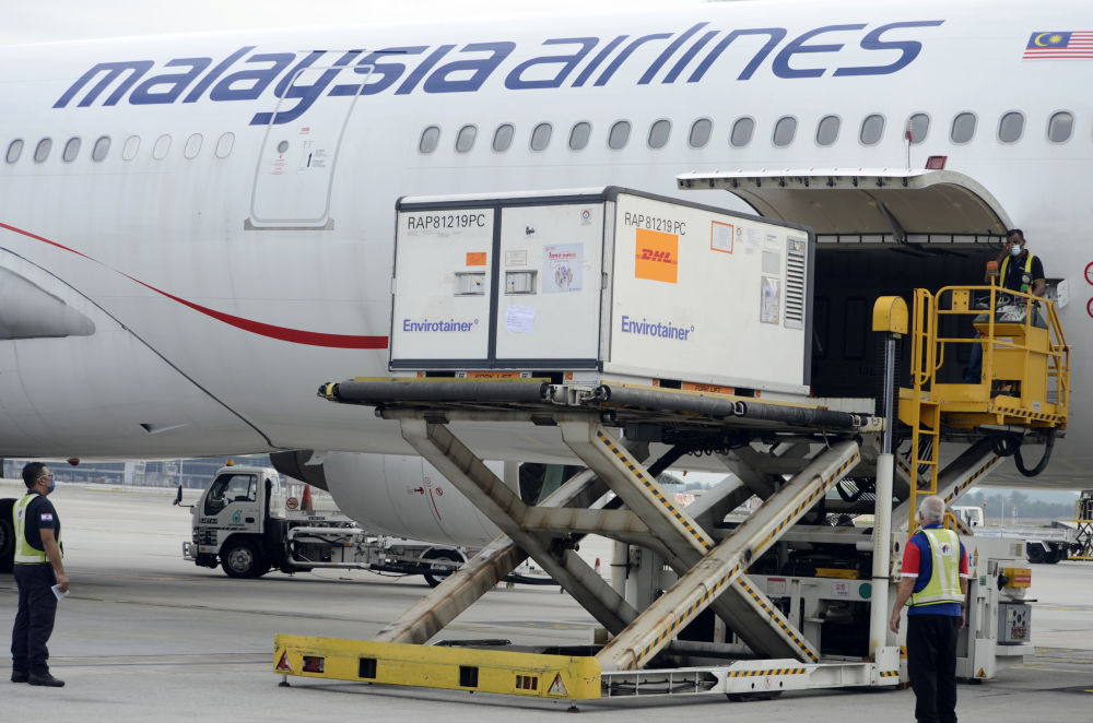 8月20日,首批中国康希诺新冠疫苗运抵马来西亚吉隆坡国际机场。新华社发(马来西亚科学、工艺和创新部供图)