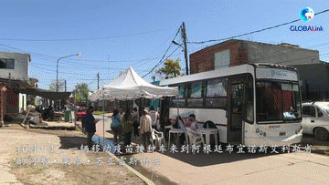 新华社北京10月3日电 10月1日,位于阿根廷布宜诺斯艾利斯省的何塞·莱昂·苏亚雷斯街头,一辆载有中国新冠疫苗的移动疫苗接种车缓缓开来。临时接种棚搭好后,当地居民迅速拉开距离,排起了队伍。