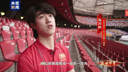 文艺演出《伟大征程》演员 马川州:他们就像凝聚成一起的一道光,特别耀眼的一道光,我想成为那一团光里面的一小粒。
