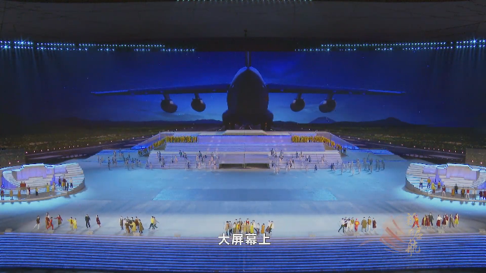 文艺演出戏剧组,进行了一系列创新探索,将旋转舞台上戏剧表演现场采用即时拍摄,实时传输,投射在现场大屏上,解决了超大空间戏剧表演只闻其声、不见其人的问题。