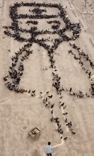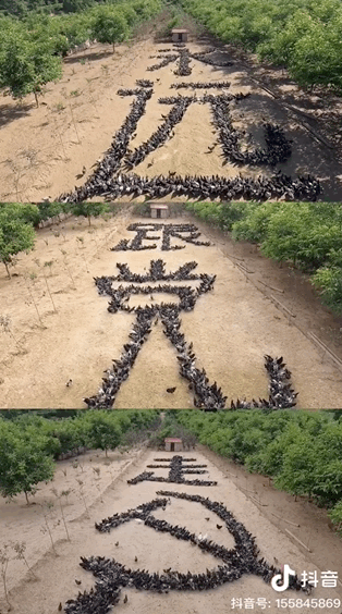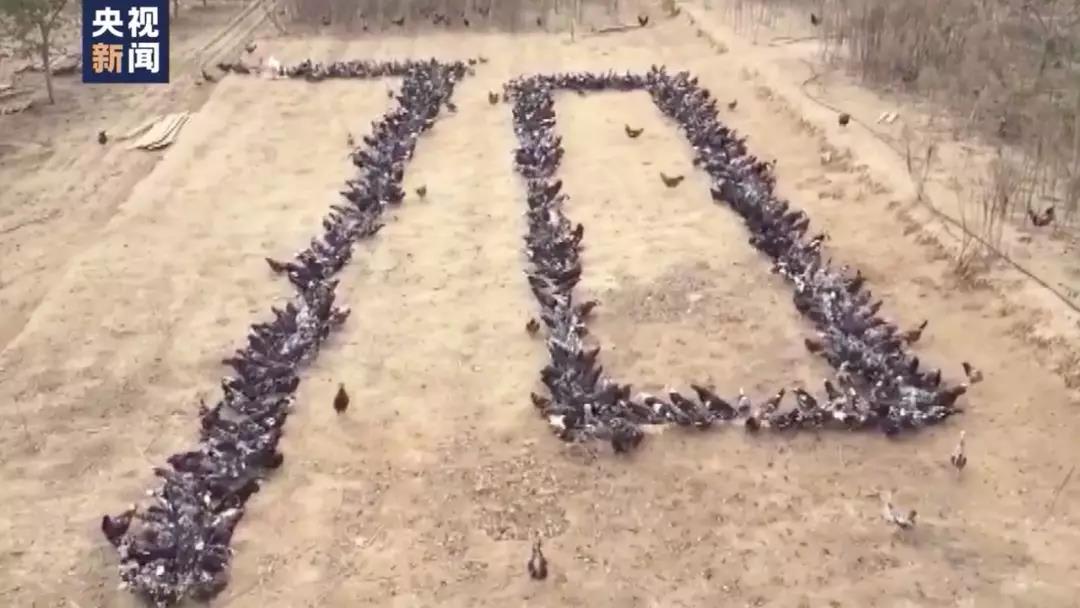 △2019年,尚育康“率领鸡小弟”拼出70字样,庆祝新中国成立70周年。