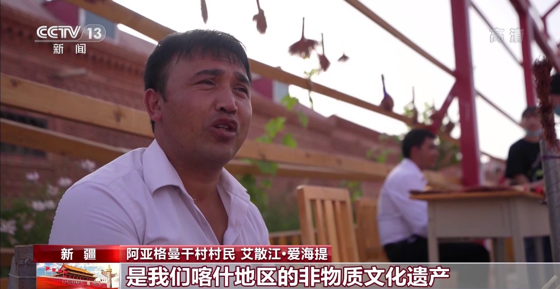 阿亚格曼干村村民 艾散江·爱海提: 这是我们村的传统手工艺,是我们喀什地区的非物质文化遗产,已经有100多年的历史了。