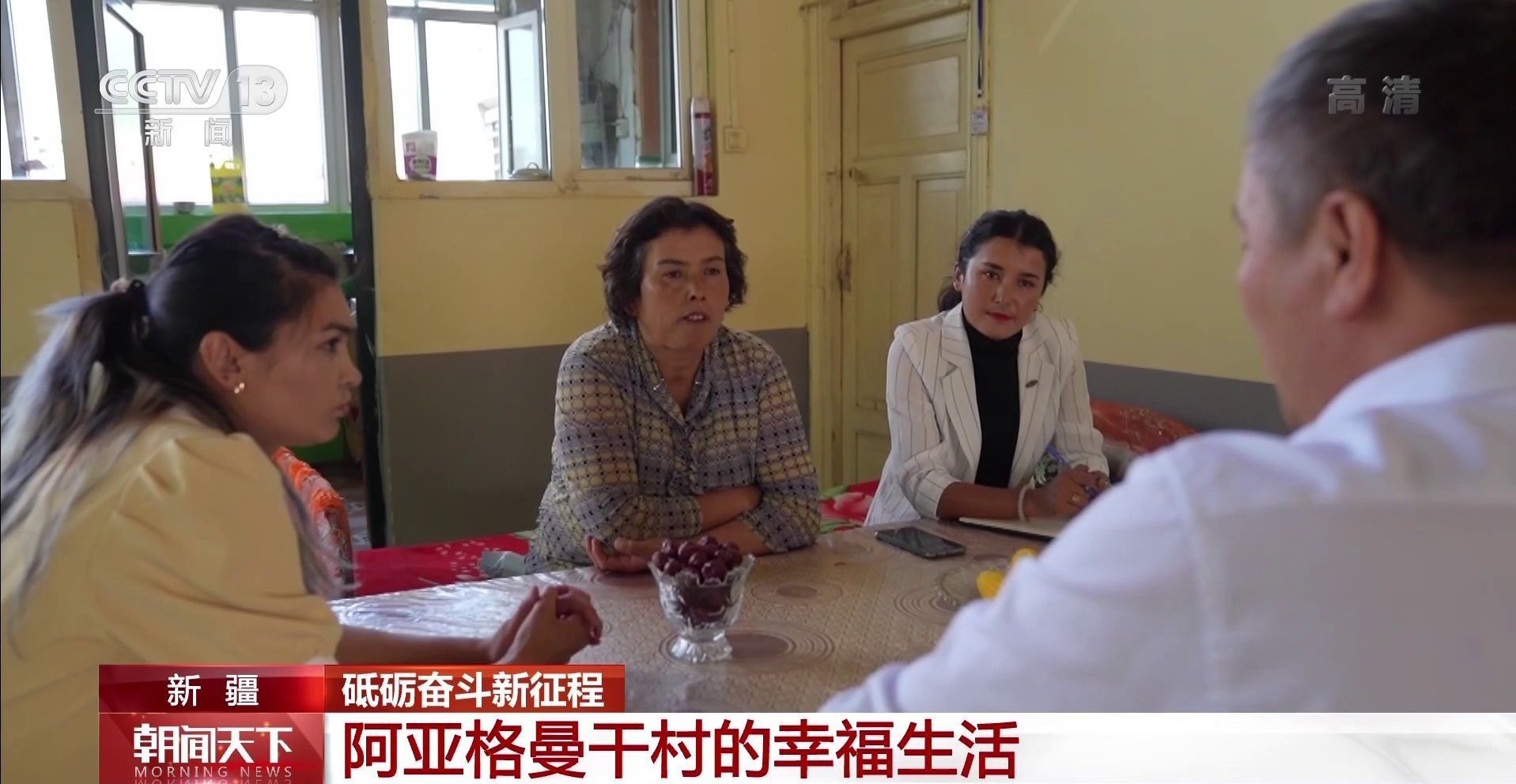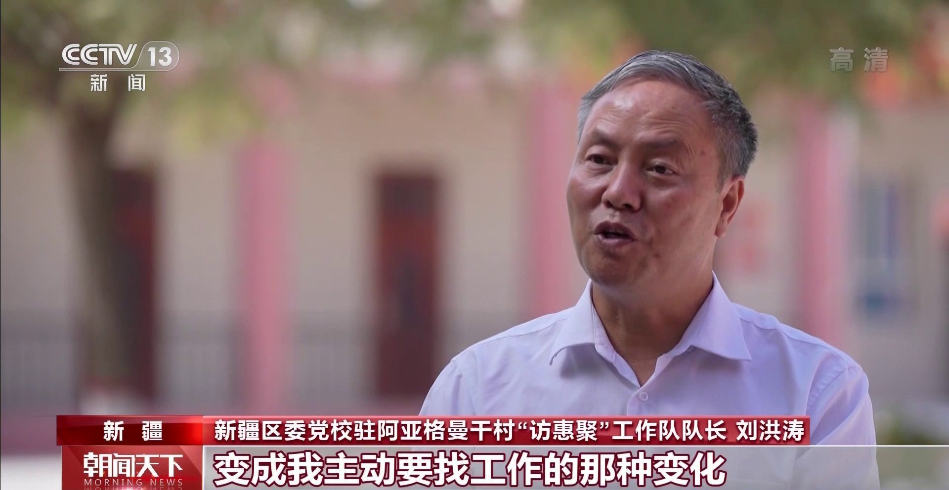 新疆区委党校驻阿亚格曼干村“访惠聚”工作队队长 刘洪涛: 我们村最大的变化就是老百姓思想的变化,从原来那种“要我富”,变成“我主动要富”的变化,从原来那种让我去干活,让我去工作,变成我主动要找工作的那种变化。大家的奋斗意识、致富意识,大家那种自我追求上进,自我追求奋进的意识是明显增强。