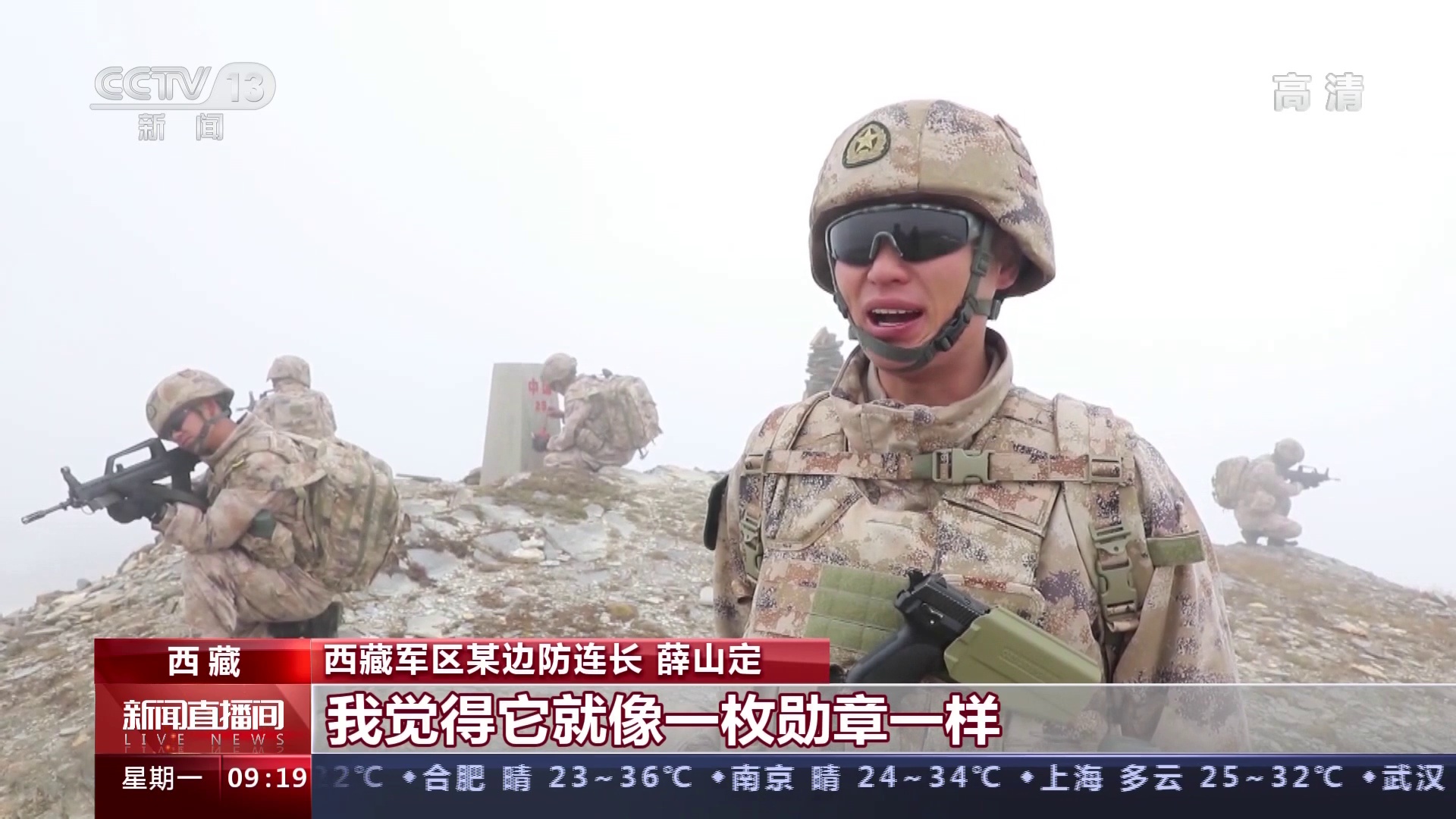 西藏军区某边防连长 薛山定:界碑是祖国领土主权的象征,我每次看到他的时候,都有特别多的感触,我觉得他就像一枚勋章一样,我们每次守护着他,擦拭着他,这种幸福感是无法用语言表达的。