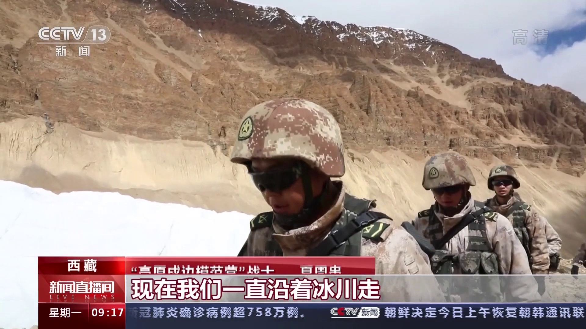 高原戍边模范营战士 夏周串:我们现在一直沿着冰川走,大概还有三公里就到了。