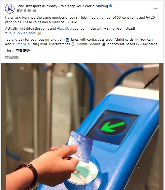 陆路交通管理局(LTA)就建议海伦和伊万使用“新便利”(SimplyGo)服务,用信用卡、借记卡、手机、智能手表或是易通卡付车资,那就不需要处理麻烦的硬币了。