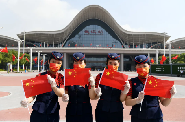 10月1日一大早,在武汉站东西广场、候车大厅、安检口等处已是人头攒动。为应对大客流,让旅客安全有序出行,车站工作人员比平日增加了一倍多,他们放弃假期,坚守岗位。