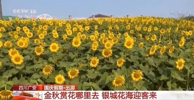 在四川广安市岳池县银城花海景区,各色各样的鲜花争奇斗艳。集中连片的簇簇葵花张开笑脸,朝气蓬勃。凤仙、百日草、波斯菊,千朵万朵的鲜花迎风怒放。游客们漫步花间路径,尽情享受假日轻松愉悦的氛围。