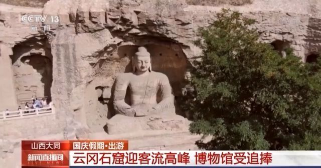 在山西大同,云冈石窟景区的游客数量相较于平日较大幅度增长。20窟是云冈石窟最著名的洞窟,大量游客在露天大佛造像前拍照留念。不少游客还前往景区内的博物馆,进一步了解历史文化。为了应对客流高峰,景区工作人员全员上岗,加强引导、控制人流。