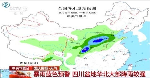 中央气象台预计,国庆假期的后三天,四川盆地、西北地区东部、华北、黄淮北部等地的降雨还将持续。南方的高温天气,从6日开始趋于减弱。