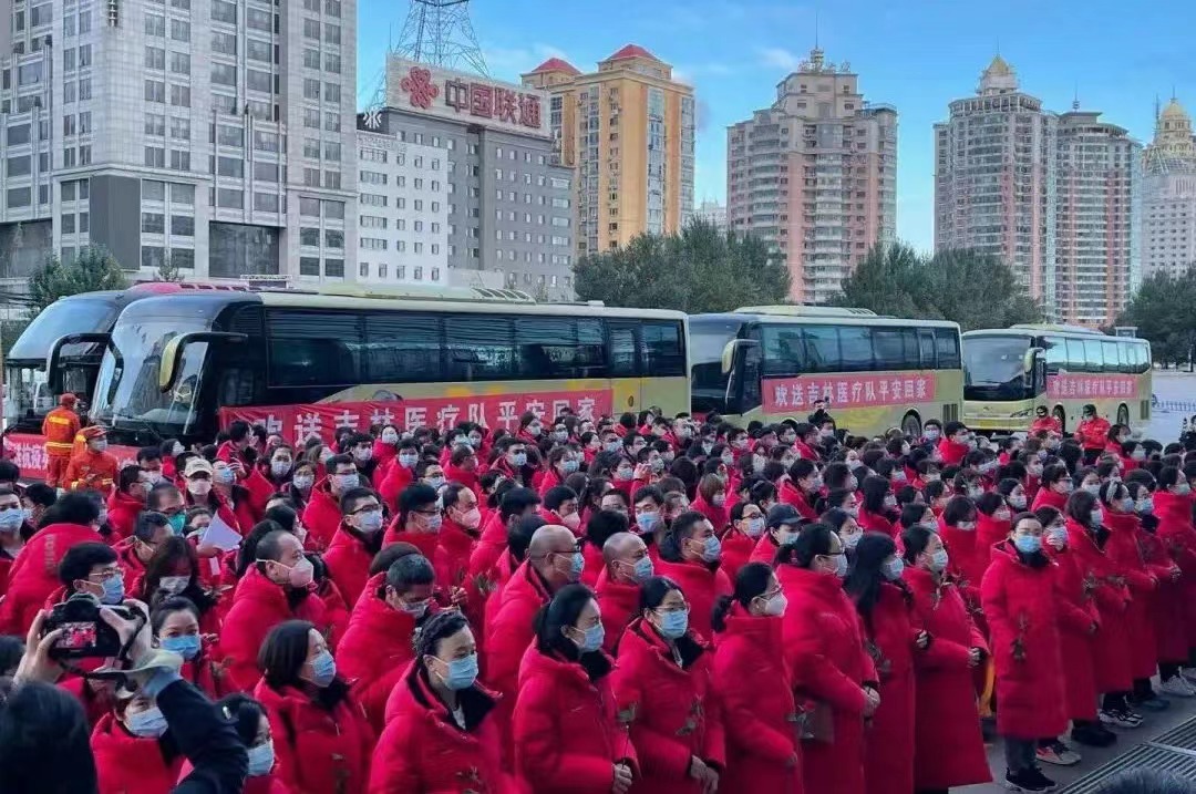 10月4日上午,河北省、吉林省援助哈尔滨核酸检测医疗队共266名队员,顺利完成核酸检测任务,启程归家。