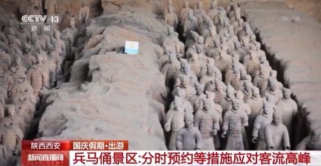 位于陕西西安的兵马俑景区一直都是旅游的热门景点。10月3日,这里迎来客流高峰。今年十一假期,兵马俑景区采取分时预约、错峰限流等措施应对客流高峰。此外根据疫情防控要求,景区单日最大游客接待量不超过景区最大承载量的60%,达到限量后将停止售票。