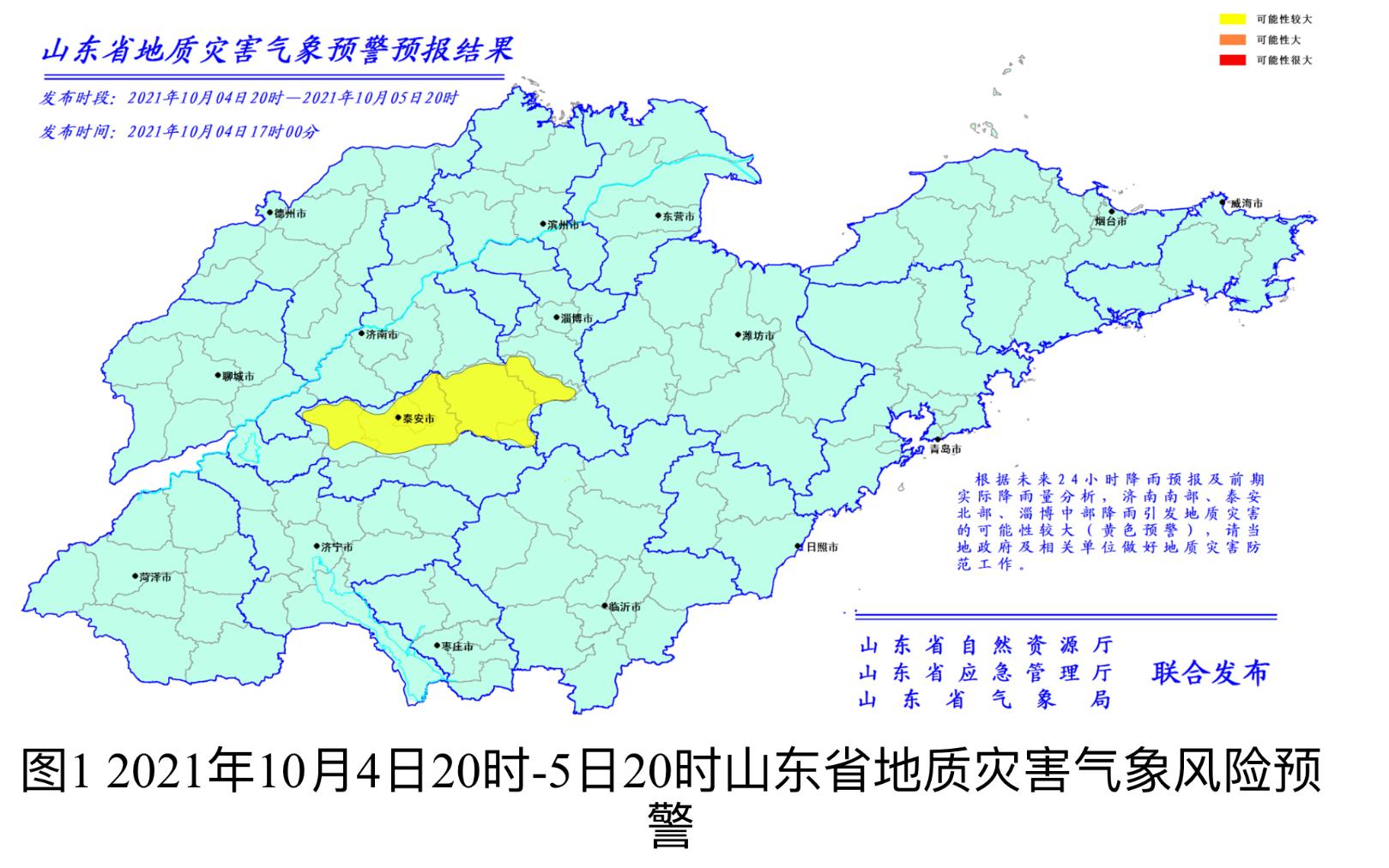 山东省自然资源厅、山东省应急管理厅、山东省气象局三部门4日17时联合发布地质灾害气象风险预警,根据未来24小时降雨预报及前期实际降雨量分析,济南南部、泰安北部、淄博中部降雨引发地质灾害的可能性较大(黄色预警),请当地政府及相关单位做好地质灾害防范工作。(总台记者 韩森)