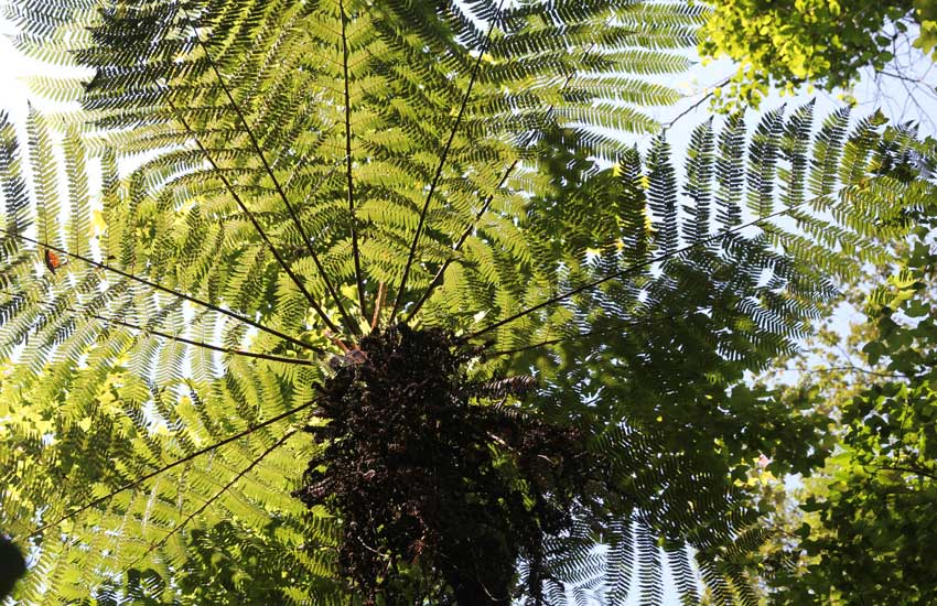 令人惊讶的是,桫椤却不会开花,也不会结果。这就意味着桫椤没有种子,那它如何繁衍后代呢?奥秘就藏在它叶片背后的星星点点上。那是孢子囊群,也是桫椤繁衍后代的秘密。