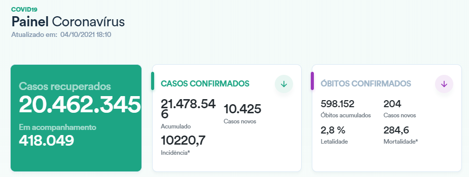 截至当地时间10月4日18时10分,根据巴西卫生部发布的数据,巴西新增新冠肺炎确诊病例10425例,累计确诊病例21478546例;新增死亡病例204例,累计死亡病例598152例,累计治愈病例20462345例。(总台记者 谢海天)