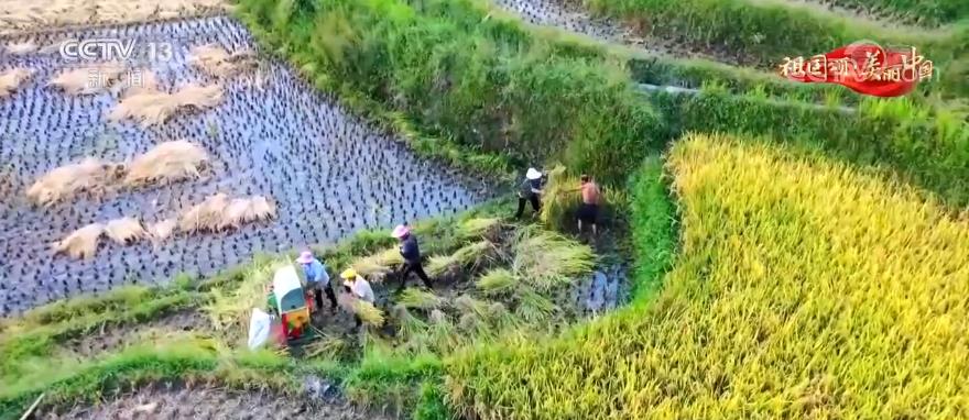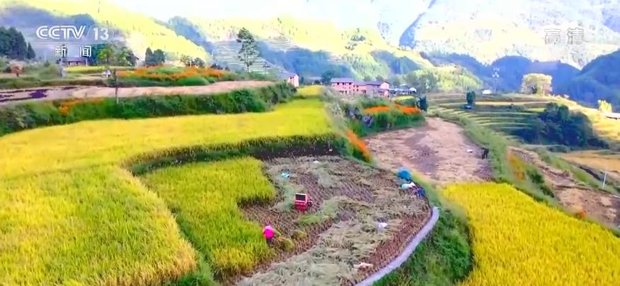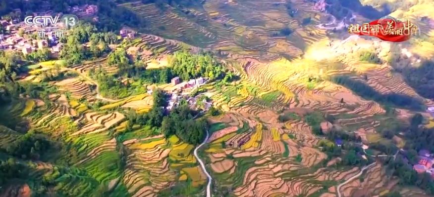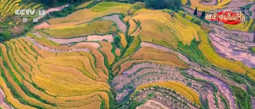 央视网消息:这片秋日的万亩梯田位于重庆酉阳县花田乡何家岩村。沉甸甸的稻穗呈现出一片金黄,蜿蜒的田垄沿着山坡向下伸展次第铺开,犹如大地的“指纹”。