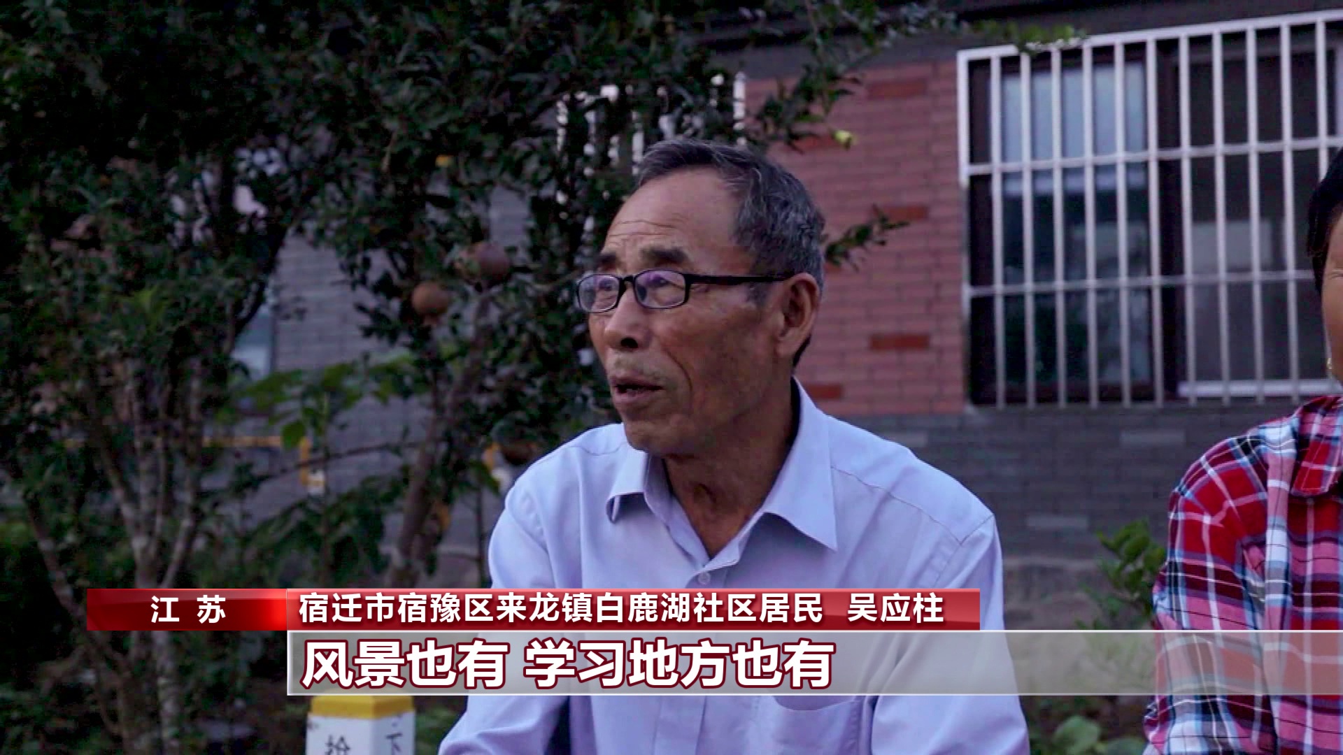 江苏宿迁市宿豫区来龙镇白鹿湖社区居民 吴应柱:给我们此地搞红色基地,我们这地方风景也有,学习地方也有,老百姓满意,比城里还好。