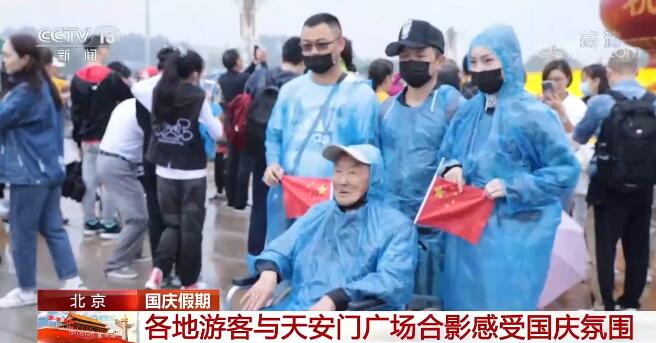 全国各地群众来到天安门广场感受节日氛围。这位坐在轮椅上的老人名叫夏树清,今年97岁,1948年在云南参加革命,能来一次天安门广场一直是他的心愿。为此,他特意佩戴了国家颁发的“庆祝中华人民共和国成立70周年”纪念章和“光荣在党50年”纪念章,与天安门广场合影留念。