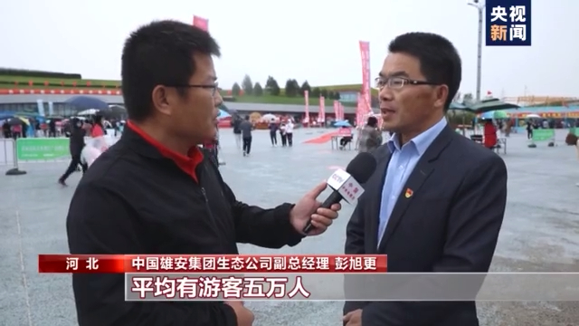 中国雄安集团生态公司副总经理 彭旭更:国庆假期以来,雄安郊野公园非常的火爆。前两天天气好,平均有游客五万人,这两天下雨,游客也超过了两万。