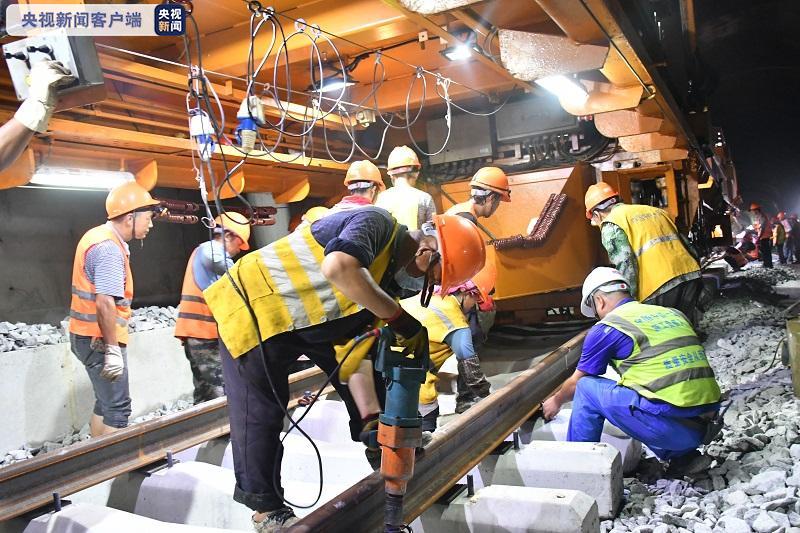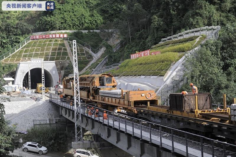 今天(10月5日),在位于云南省景洪市境内的中(国)老(挝)昆(明)万(象)铁路景寨隧道内,随着现场负责人的一声令下,CPG500型铺轨机将一对500m长钢轨铺设到景寨隧道整体道床上,开启了中老铁路国内段最后26公里铺轨的冲刺。