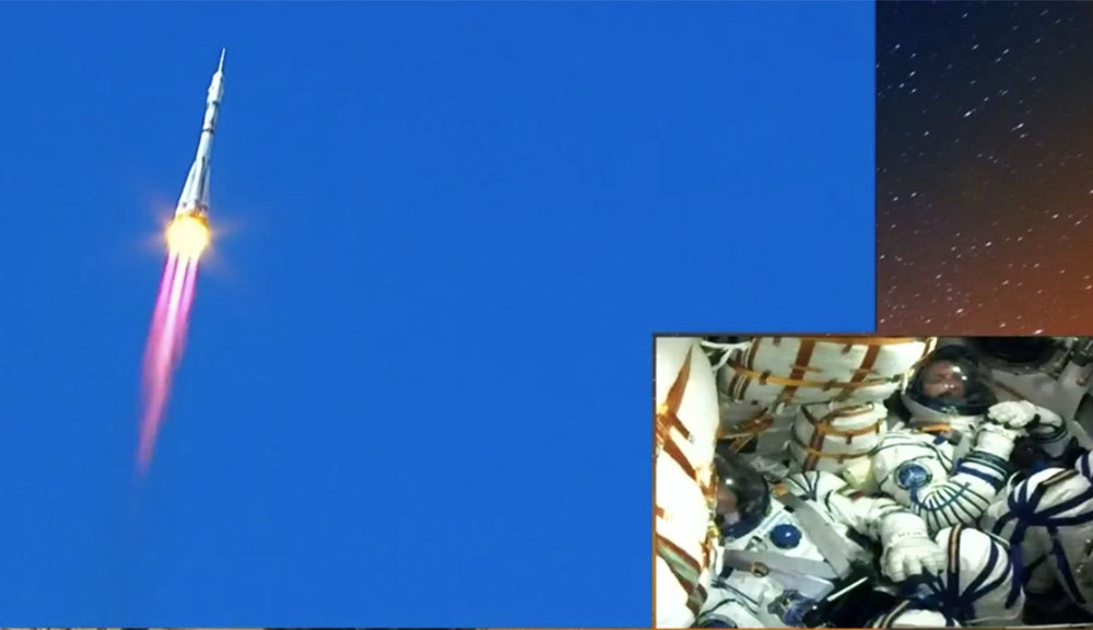 飞船发射9分钟之后,俄国家航天集团公司宣布发射成功。飞船将于3小时17分钟之后与国际空间站进行对接。(总台记者 宋一平)