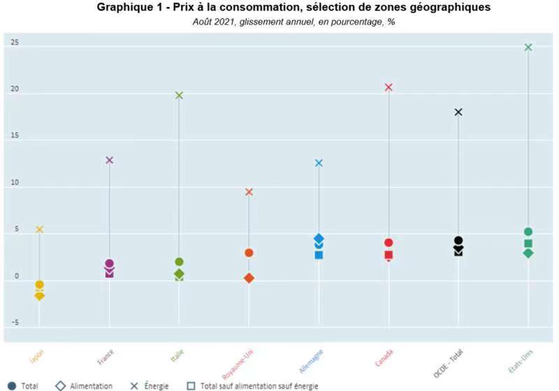 当地时间10月5日,总部位于法国巴黎的经济合作与发展组织(OECD)发布公报表示,受能源和食品价格上涨的影响,经合组织成员国通货膨胀率自2020年12月呈持续上升趋势,2021年8月达到4.3%,2021年7月这一数值为4.2%。