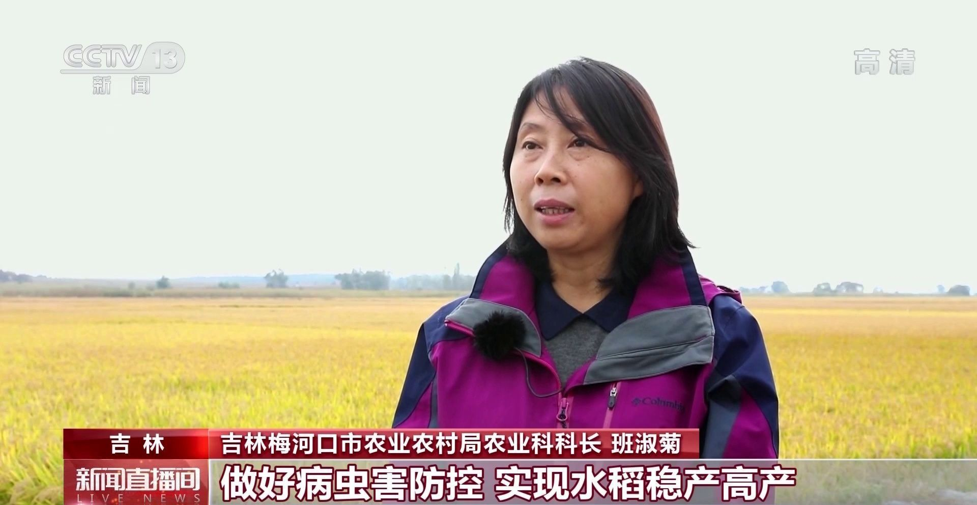 吉林梅河口市农业农村局农业科科长 班淑菊:在水稻生长的不同时期,我们都组织专业技术人员深入田间地头,指导农民加强田间管理,做好病虫害的防控,实现水稻的稳产高产。