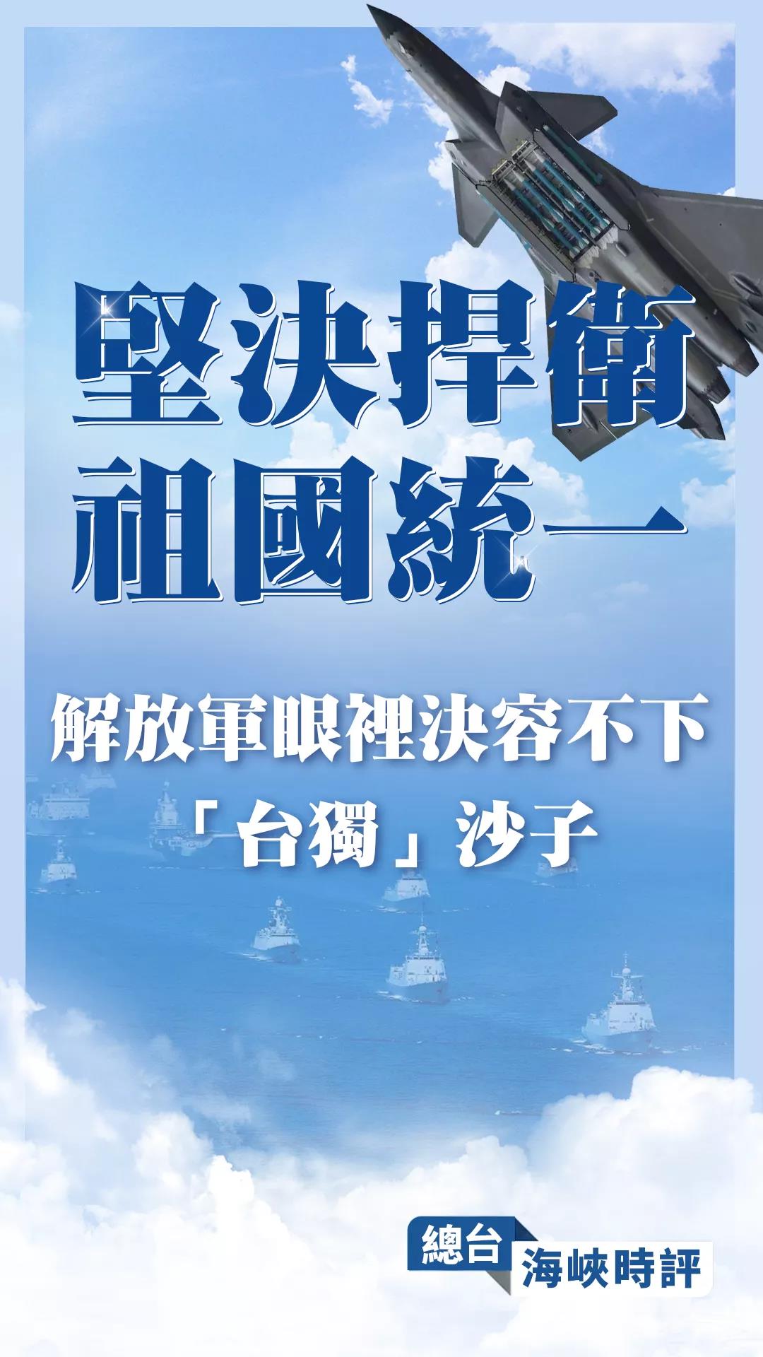 对于这些“台独”分子,国防部新闻发言人吴谦大校此前表示,中国人民像保护眼睛一样珍惜中国主权和领土完整,眼里决容不下沙子。如果有人胆敢在台湾问题上挑战中方的底线,中国人民解放军决不答应,将坚决捍卫国家主权和领土完整。
