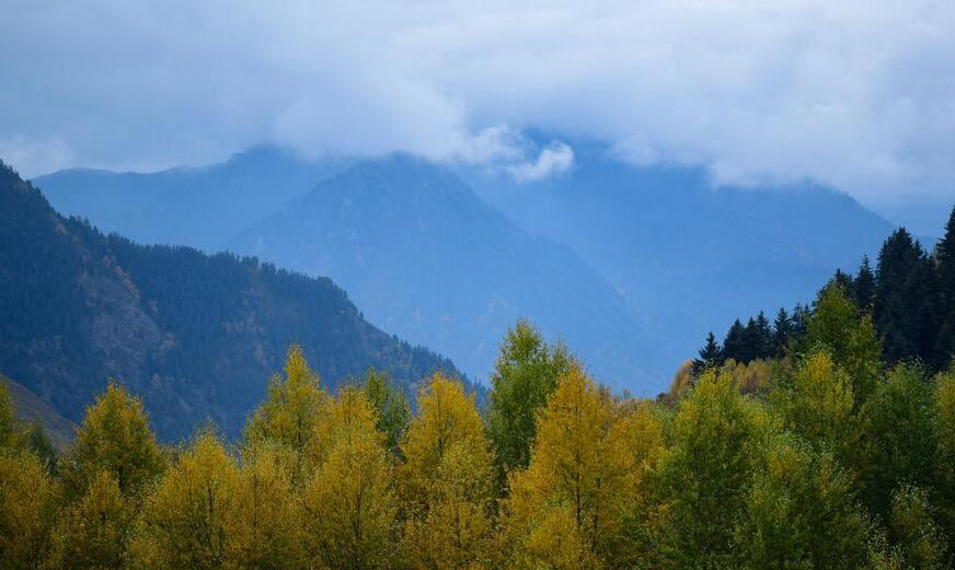 进入10月,位于青海省海北藏族自治州门源回族自治县的仙米林场秋意盎然,景色如画。
